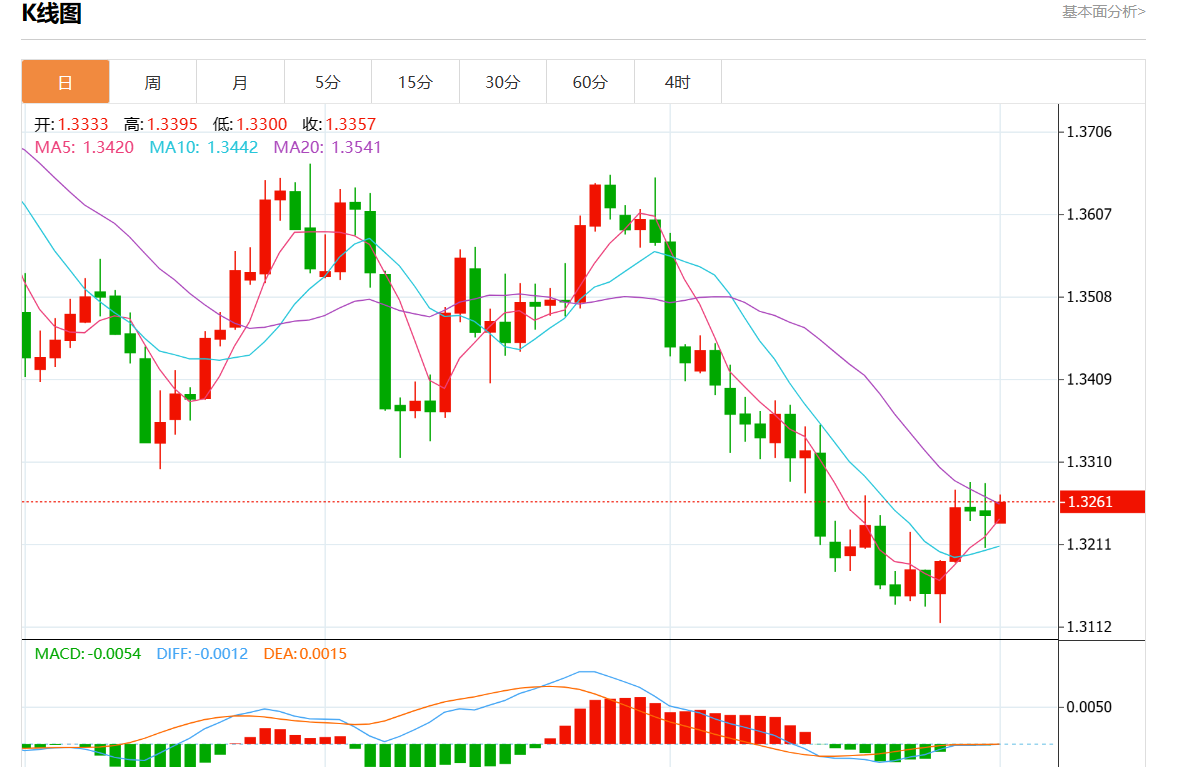 周一盘中,美元/加元最新报1.3262,日图涨0.12% 今日分析:空头头寸低于1.3270,目标在1.3220和1.3205延伸。 技术点评:RI缺乏上升动力。 支撑位:1.33001.32851.3270 阻力位:1.32201.32051.3190