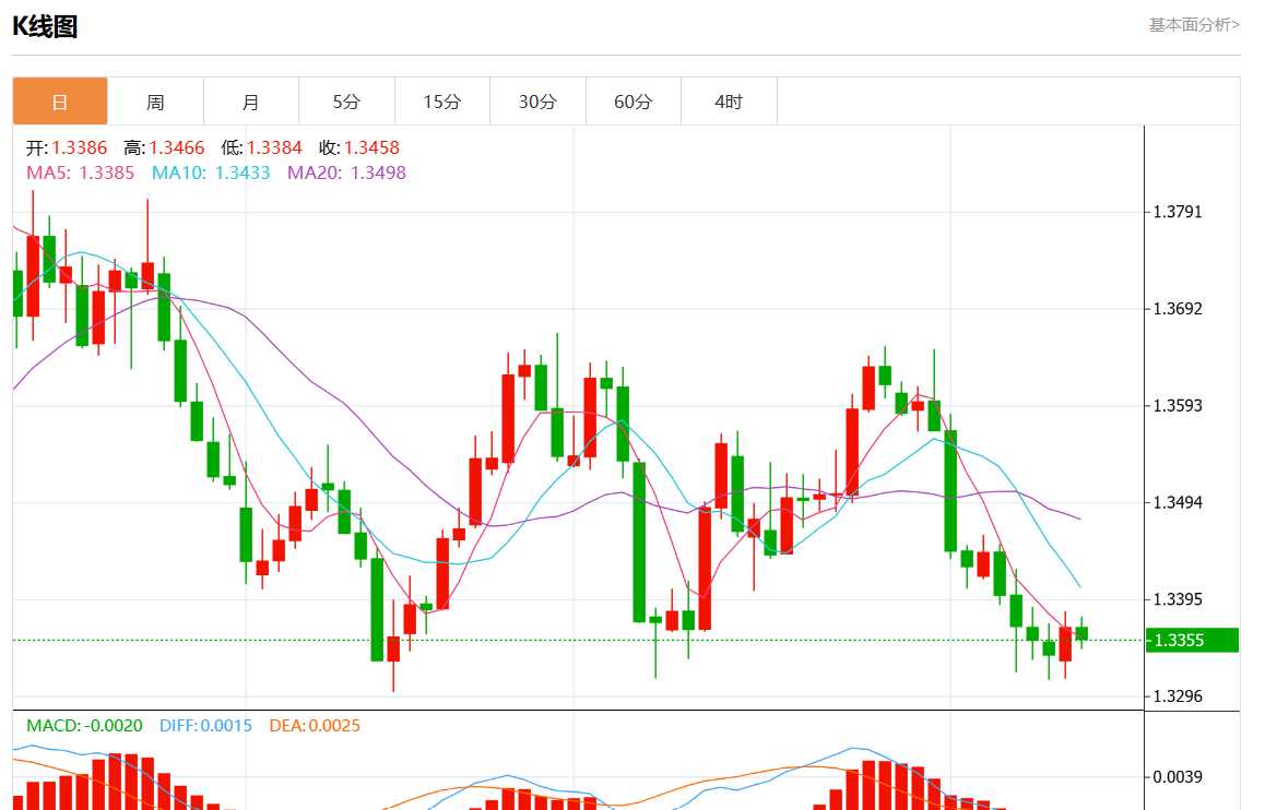 周二盘中,美元/加元最新报1.3354,日图跌0.10% 今日分析:在1.3350之上,看涨,目标价位为1.3385,然后为1.3400。 技术点评:RI技术指标运行趋势复杂,倾向于上涨。 支撑位:1.34251.34001.3385 阻力位:1.33501.33351.3320