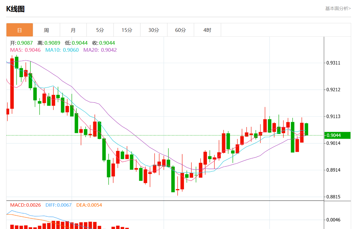 周二盘中,美元/瑞郎最新报0.9044,日图跌0.50% 今日分析:在0.9090之下,看跌,目标价位为0.9045,然后为0.9030。 技术点评:RI技术指标呈现继续下降趋势。 支撑位:0.91200.91050.9090 阻力位:0.90450.90300.9015