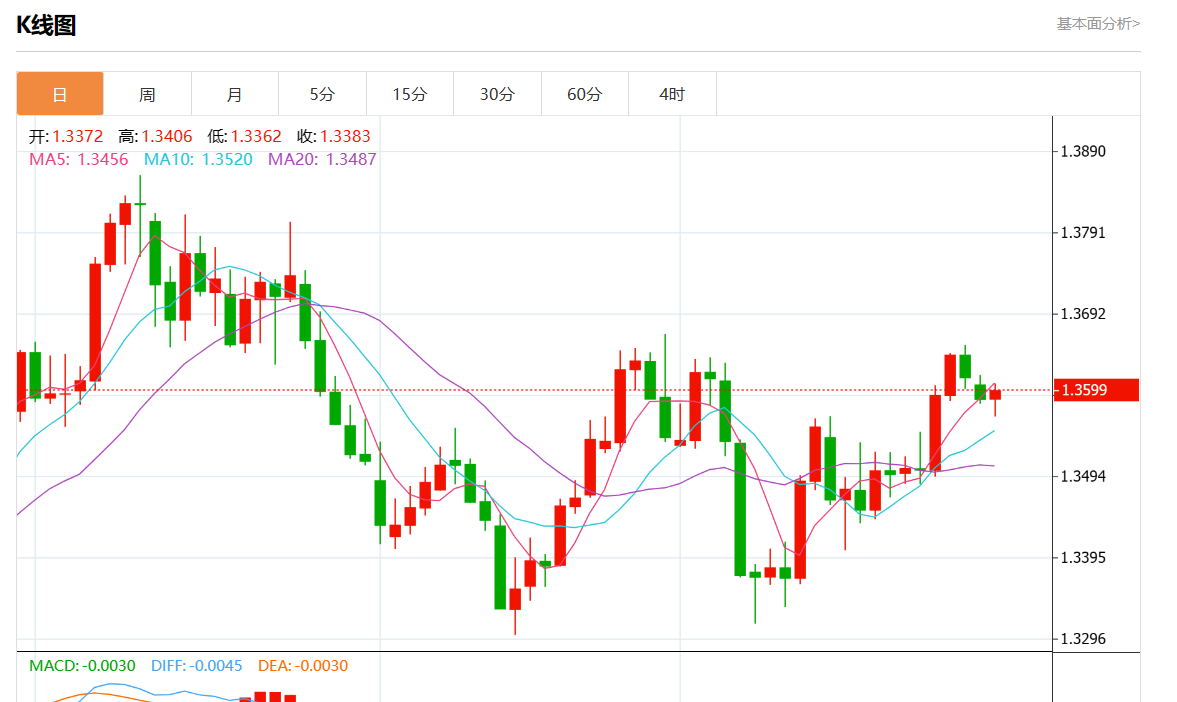 周二盘中,美元/加元最新报1.3604,日图涨0.11% 今日分析:在1.3565之上,看涨,目标价位为1.3630,然后为1.3655。 技术点评:RI技术指标向上运行。 支撑位:1.36801.36551.3630 阻力位:1.35651.35401.3510