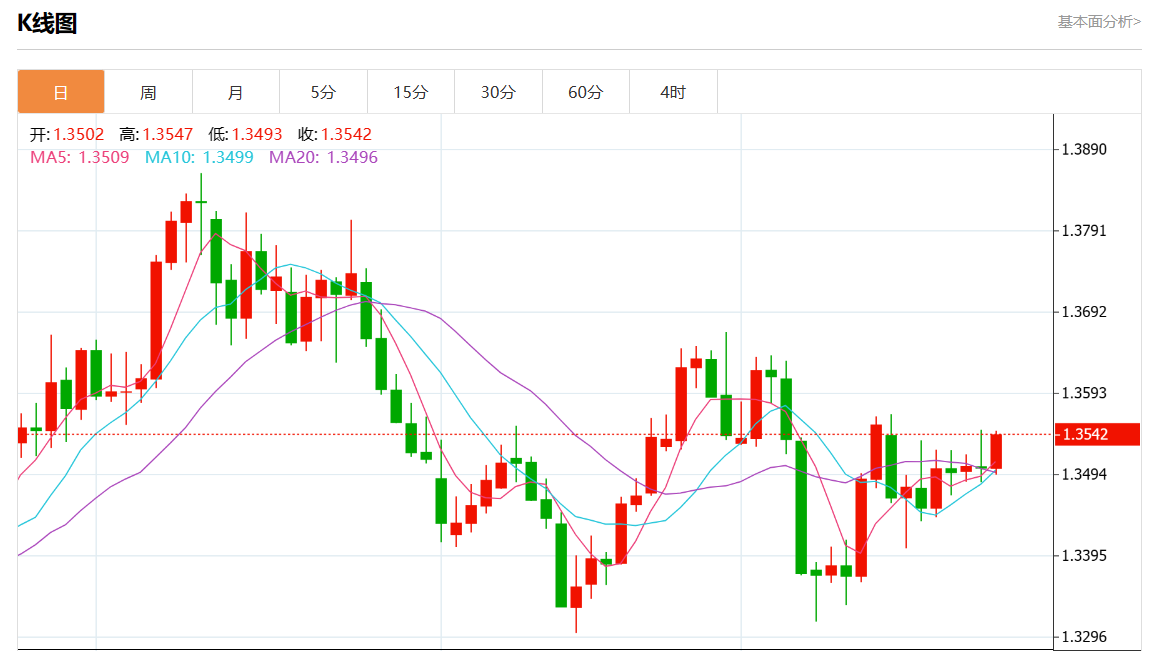 周三盘中,美元/加元最新报1.3545,日图涨0.31% 今日分析:在1.3485之上,看涨,目标价位为1.3550,然后为1.3575。 技术点评:RI技术指标向上运行。 支撑位:1.36001.35751.3550 阻力位:1.34851.34701.3455