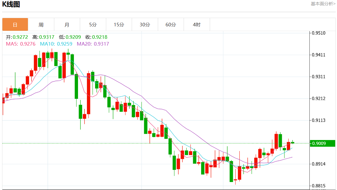 周三盘中,美元/瑞郎最新报0.9008,日图跌0.02% 今日分析:在0.8990之上,看涨,目标价位为0.9030,然后为0.9045。 技术点评:0.8990附近形成了一个支撑的底部,将带来走势短期内的稳定。 支撑位:0.90600.90450.9030 阻力位:0.89900.89750.8960