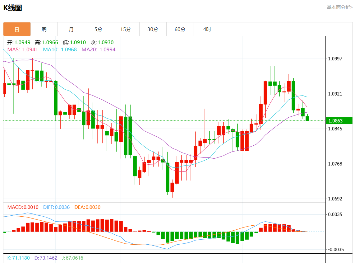 周二欧市盘中,欧元/美元最新报1.0861,日图跌0.10%. 今日分析:在1.0880之下,看跌,目标价位为1.0855,然后为1.0840。 技术点评:跌破1.0855位置,将会引发下跌至1.0840。 支撑位:1.09051.08901.0880 阻力位:1.08551.08401.0825 (亚汇网编辑
