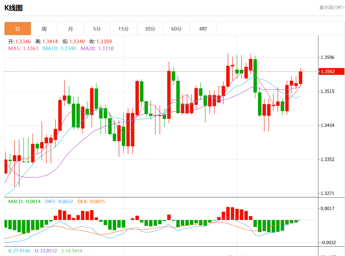 周二盘中,美元/加元报1,3561,涨幅0.21%。 今日分析:在1.3525之上,看涨,目标价位为1.3580,然后为1.3600。 技术点评:RI技术指标向上运行。 支撑位:1.36201.36001.3580 阻力位:1.35251.35101.3495 (亚汇网编辑:静香)