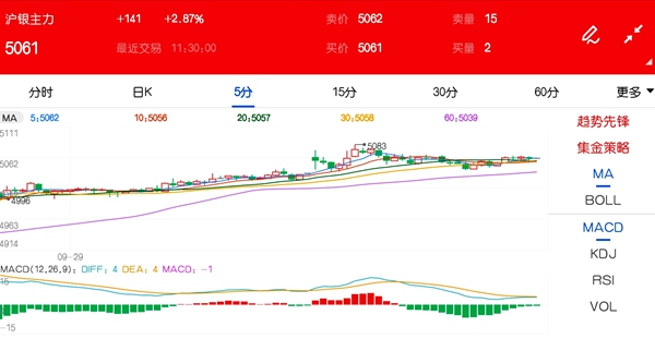 9月29日,国内商品期货午盘涨跌参半,贵金属期货止跌反弹,其中沪银主力合约重返5000元关口上方。截至收盘,沪银主力合约涨2.87%,报5061元/千克。 9月29日期市午评:商品期货涨跌参半沪银重返5000关口上方 上周贵金属价格大跌和3月份的情况有点类似,主要是通胀预期下降导致的。但不同的是,上次爆发了