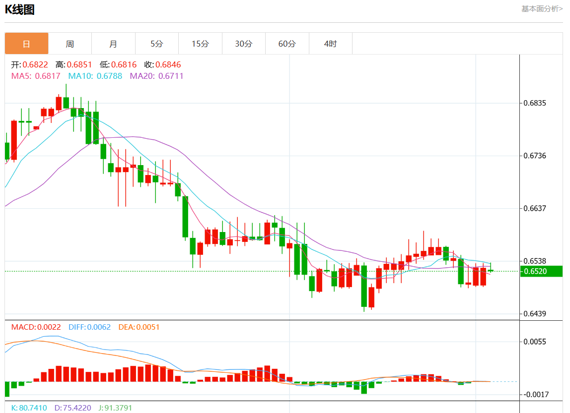 周一盘中,澳元/美元报0.6520,跌幅0.08%。 今日分析:在0.6505之上,看涨,目标价位为0.6540,然后为0.6555。 技术点评:即使我们不能排除持续调整的可能性,其时间长度上,应该是有限的。 支撑位:0.65700.65550.6540 阻力位