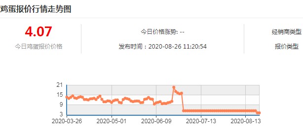 今日鸡蛋期货价格行情查询(2020年08月31日) 产品名称 开盘价 昨收价 鸡蛋主力 3506 3558 鸡蛋2009 3538 3610 鸡蛋2010 3506 3558 鸡蛋2011 3501 3550 鸡蛋2012 3750 3781