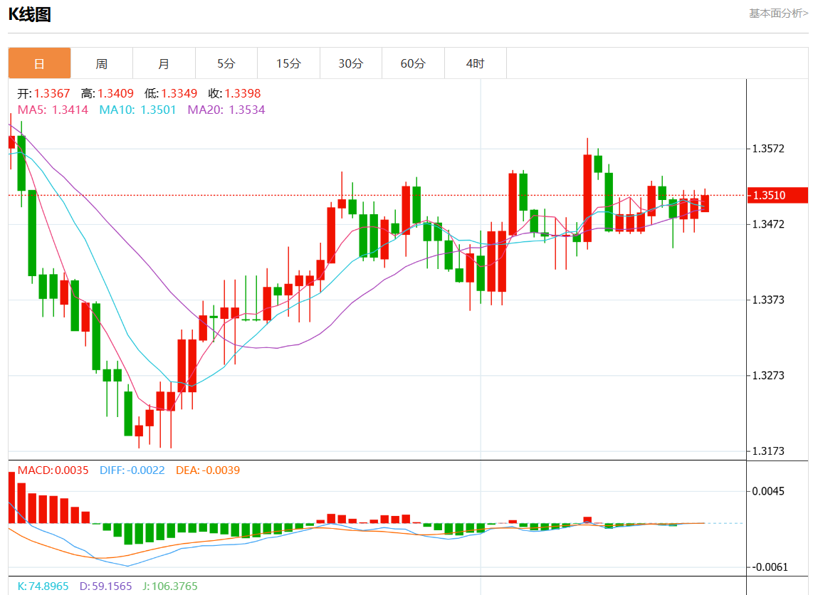 周一盘中,美元/加元报1.3411,涨幅0.04%。 今日分析:在1.3485上方做多,目标在1.3535和1.3555。 技术点评:RI看涨,需要进一步上涨。 支撑位:1.35701.35551.3535 阻力位:1.34851.34601.3440 (亚汇网编辑:静香)
