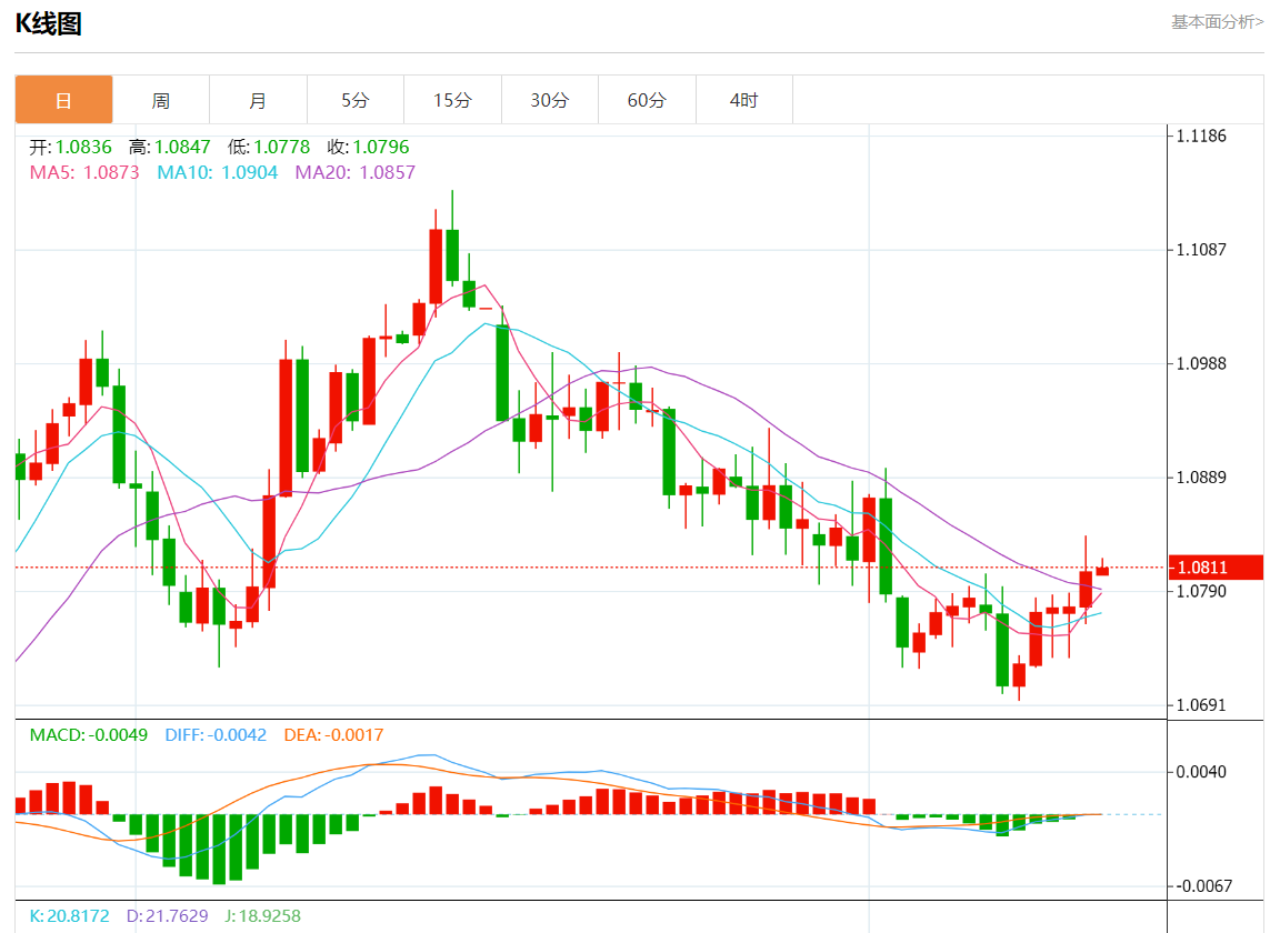 周三欧市盘中,欧元/美元最新报1.0812,日图涨0.04%. 今日分析:在1.0795上方做多,目标在1.0825和1.0840。 技术点评:RI显示上行势头。 支撑位:1.08551.08401.0825 阻力位:1.07951.07801.0760 (亚汇网编辑:静香)