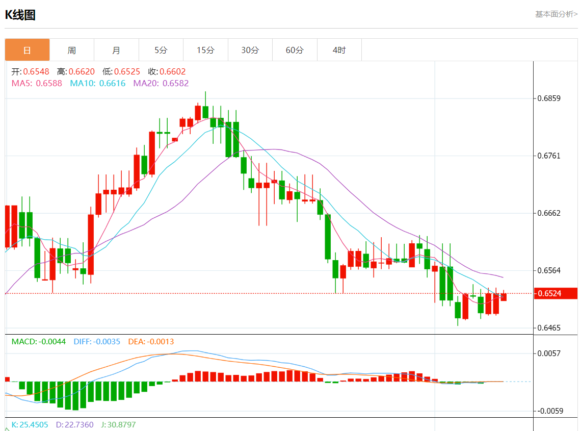 周一盘中,澳元/美元报0.6524,跌幅0.01%。 今日分析:在0.6505上方做多头头寸,目标在0.6540和0.6555。 技术点评:尽管不能排除继续合并的可能性,但其范围应受到限制。 支撑位:0.65700.65550.6540 阻力位:0.65050.64900.6480 (亚汇网编辑:静
