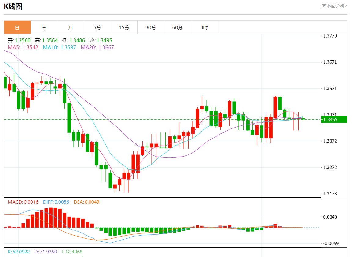 周一盘中,美元/加元报1.3455,跌幅0.02%。 今日分析:在1.3480下方做空,目标在1.3440和1.3425。 技术点评:只要1.3480是阻力位,就寻找带有看跌偏见的震荡价格走势。 支撑位:1.35101.34951.3480 阻力位:1.34401.34251.3410 (亚汇网编辑:静香