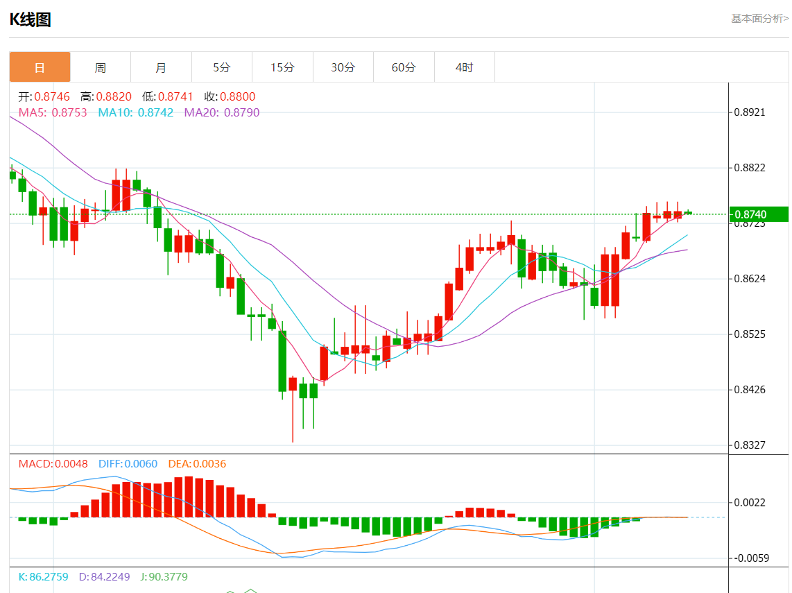 周一盘中,美元/瑞元报0.8740,跌幅0.05%。 今日分析:在0.8760下方做空,目标在0.8725和0.8710。 技术点评:只要0.8760是阻力位,请寻找带有看跌偏见的震荡价格走势。 支撑位:0.87900.87750.8760 阻力位:0.87250.87100.8690 (亚汇网编辑:静香
