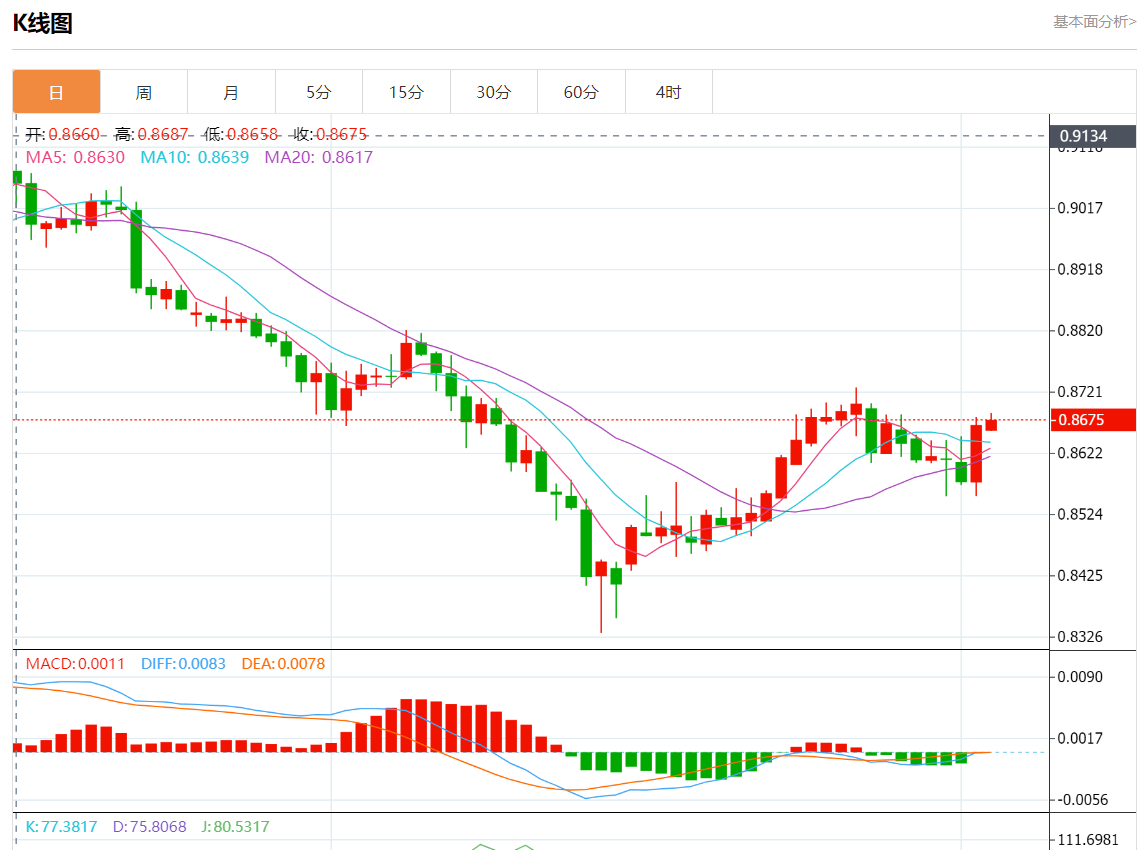 周一盘中,美元/瑞元报0.8674,涨幅0.08%。 今日分析:在0.8645上方做多,目标在0.8690和0.8720。 技术点评:下一个阻力位在0.8690,然后是0.8720。 支撑位:0.87400.87200.8690 阻力位:0.86450.86250.8600 (亚汇网编辑:静香)