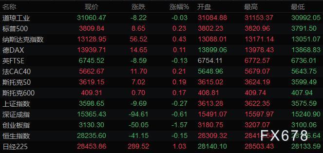 周三(1月13日),欧洲股市走低,美股期货也同步下挫,全球股市显示风险情绪正随着进一步恶化的新冠疫情继续回落。 截至本稿发布(北京时间20:44),英国富时100指数、德国DAX指数和法国CAC指数分别下跌了0.23%、0.27%和0.03%。期货市场显示今日美股将会低开,道琼斯、标普和纳斯达克指数期货分别下跌了0.26%、