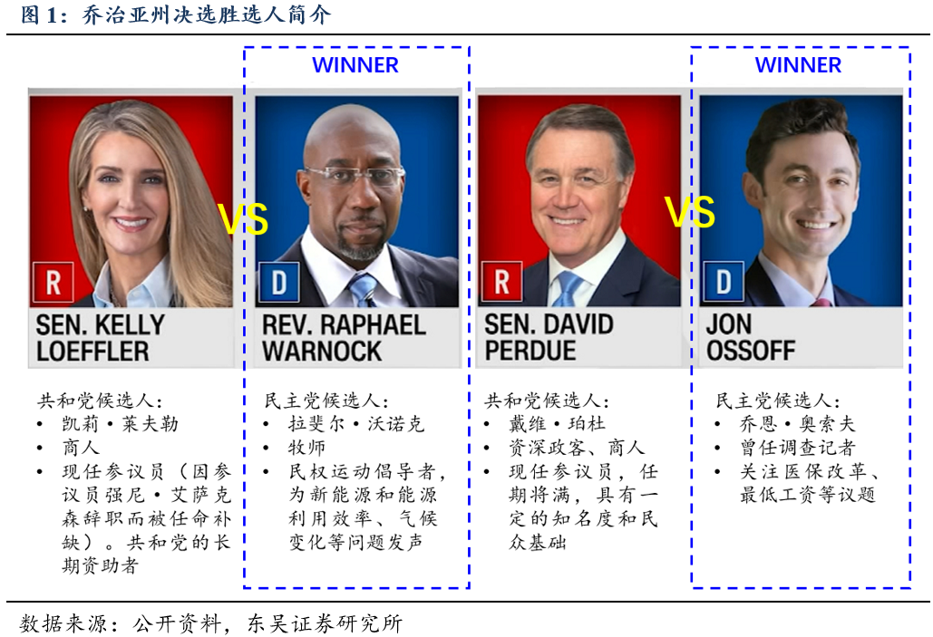 纳指期货周三下跌逾1%,原因是投资者预期民主党将在佐治亚州参议院第二轮选举中赢得两场胜利,或将取得参议院的控制权。 若民主党控制参议院,这将给当选总统乔·拜登(Joid)更大的空间来实施他的改革计划,包括新的新冠疫情刺激法案,与此同时这也可能意味着更高的企业税和对科技股巨头更严格的监管,而