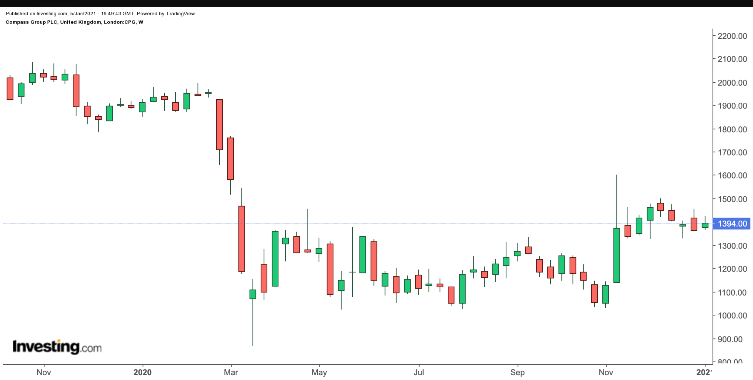 2021年伊始,美国市场就迎来了一波波澜起伏的走势。本文我们将会来了解两家来自英国的全球食品企业,投资者或可通过它们,缓解目前市场所带来的波动。它们分别是来自富时100指数的成分股Coa(CG)和富时250的成分股TataLyl。 1、康帕斯Coa(LO:CG) 总部位于萨里的跨国餐饮承保公司康帕斯