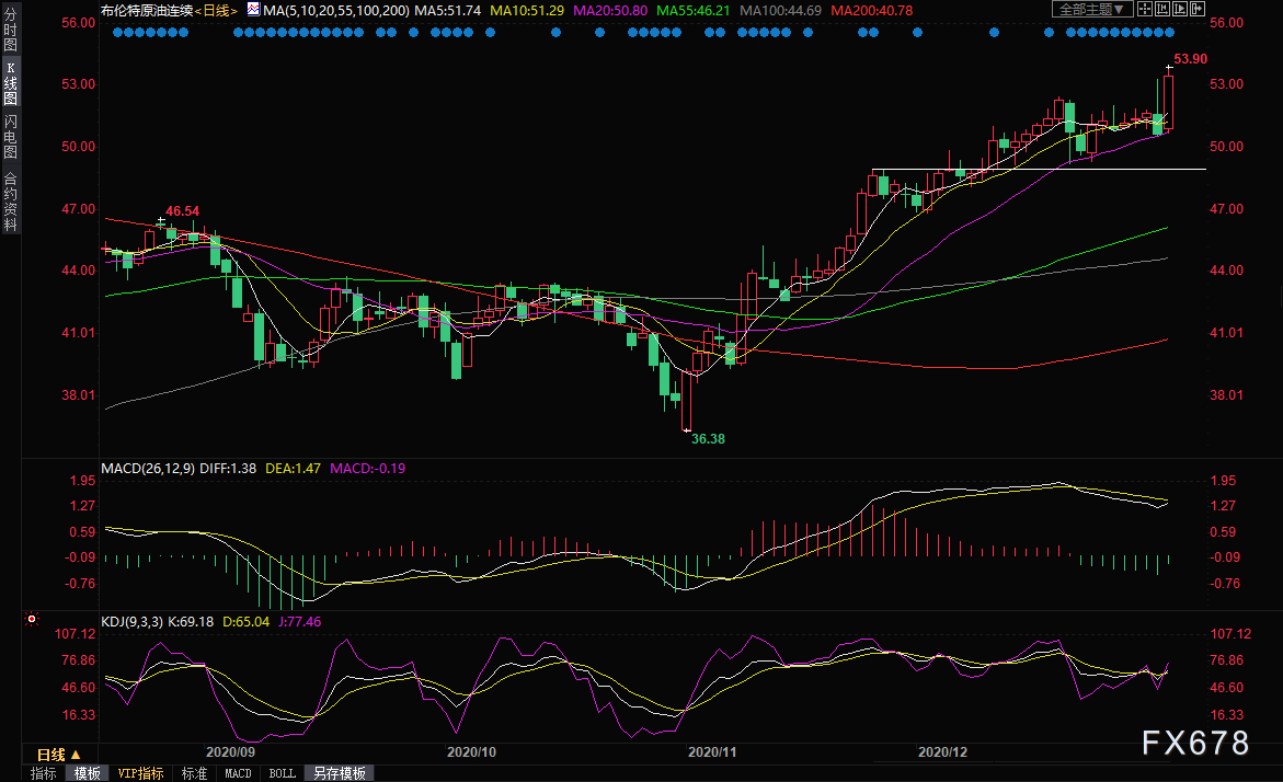 周三(1月6日)亚市盘初,美原油交投于49.79美元/桶附近,守住了隔夜大部分涨幅。周二国际油价大涨逾5%,美油一度创2月底以来新高至50.20美元/桶,沙特意外自愿超配额减产,伊朗扣留韩国船只,美国I制造业I数据表现靓丽,AI原油库存连续第三周下降,都给油价提供上涨动能。 不过,新冠疫情仍然令人担忧,德