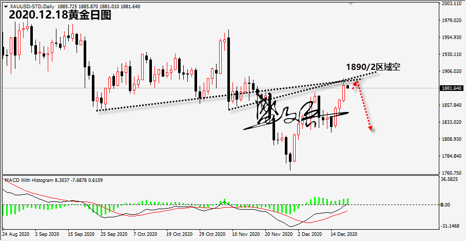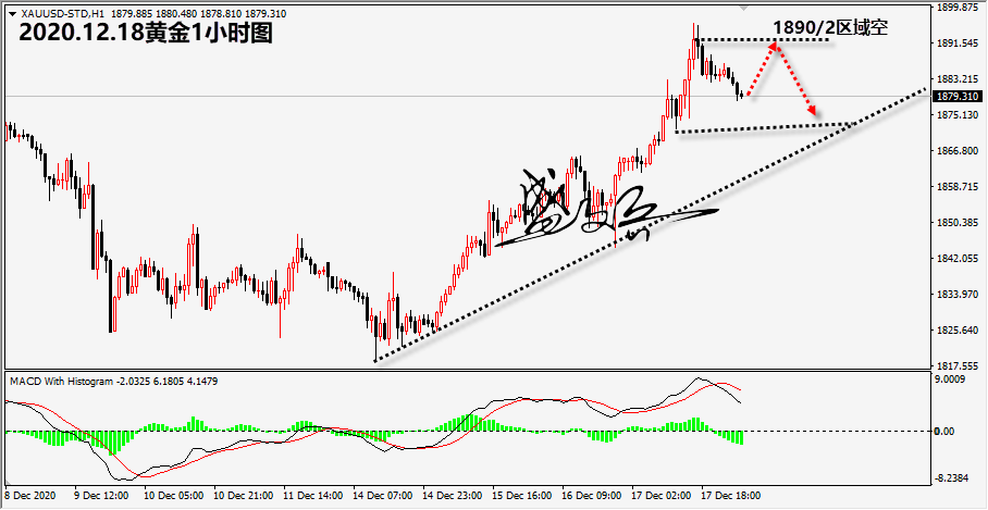 周五(12月18日)亚洲时段,现货黄金小幅下跌,交投于1880上方;周四(12月17日)金价上涨逾1%,至一个月高点,收于1885.42美元/盎司,因市场预期将出台更多的新冠救援措施,以及美联储承诺向经济注入更多资金并维持低利率,导致美元下跌。 美国的财政纾困法案已经出台在即,而美联储决议带来的影响也继续推升