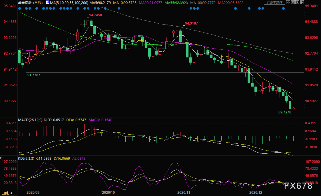 黄金周四(12月17日)大涨1.12%,最高触及1896.2美元;主因美联储宽松的货币政策和美国新冠援助纾困法案即将达成的预期均支持黄金上涨;美元指数大幅的走低,同样支持黄金上扬。 美联储维持宽松的货币政策不变,维持每个月1200亿美元的购债规模不变,同时扩大美元互换额度。 美国国会领导人及其幕僚们继