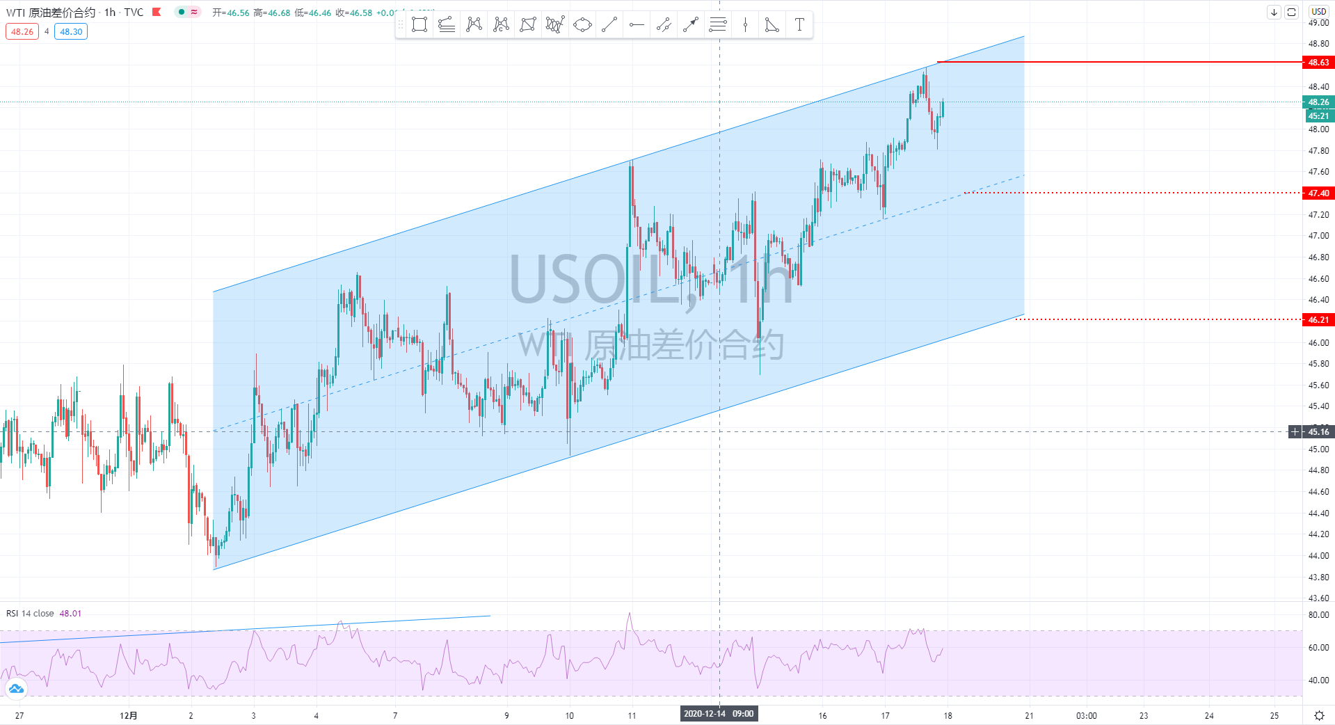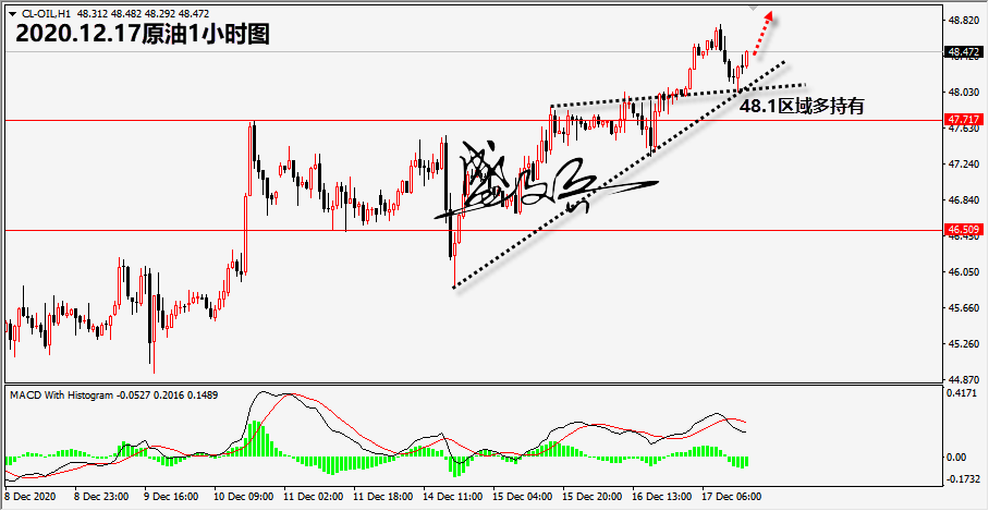 周四(12月17日)亚洲时段,国际油价小幅冲高,美原油涨逾1%至48.38美元/桶,再创3月初以来新高,此前美国政府数据显示上周原油库存下滑,市场对美国疫情援助方案的乐观情绪也推动油价上涨。此外,美联储利率决议重申低利率政策,美元再创逾两年半新低,英国脱欧谈判也取得进展,也都给油价提供支撑。 美国能源信