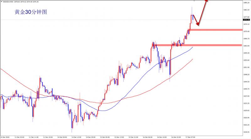 黄金 黄金今日完全符合笔者的预期,美盘开盘黄金再度上扬,最高触及1890位置。市场对于美国刺激方案预期继续支撑金价上涨。今日笔者连续给出逢低参与多头的思路,只要根据笔者思路,逢低参与多头者全部的获利。 由于近期黄金基本上保持在对刺激方案预期中上涨,今晚如果预期落地,金价将展开回落的可能较