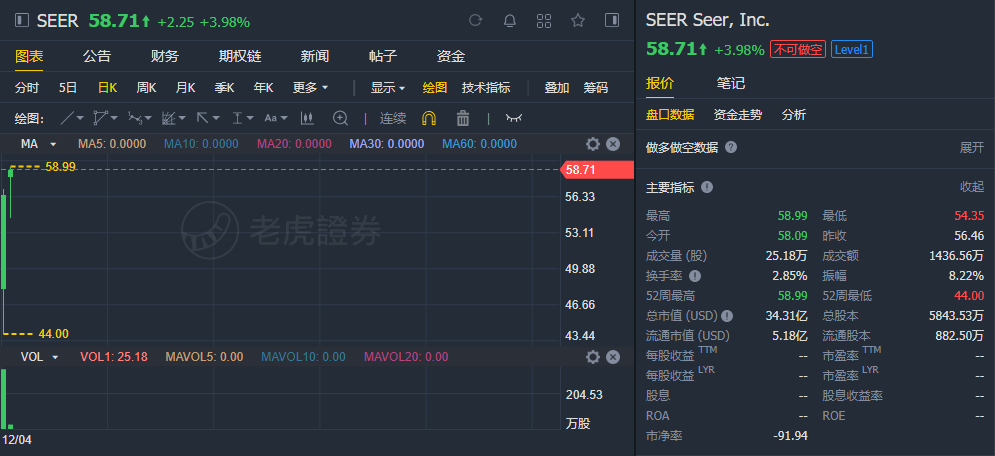 12月7日讯,美国癌症检测公司r涨近4%,盘中股价创新高至58.99美元。 美国癌症统计权威机构r美国IO首日开盘报48.00美元,此前给出的IO发行价为每股19.00美元,公司IO发行了921万股股票,此前计划发行882万股,公司通过IO最终募集资金1.75亿美元。