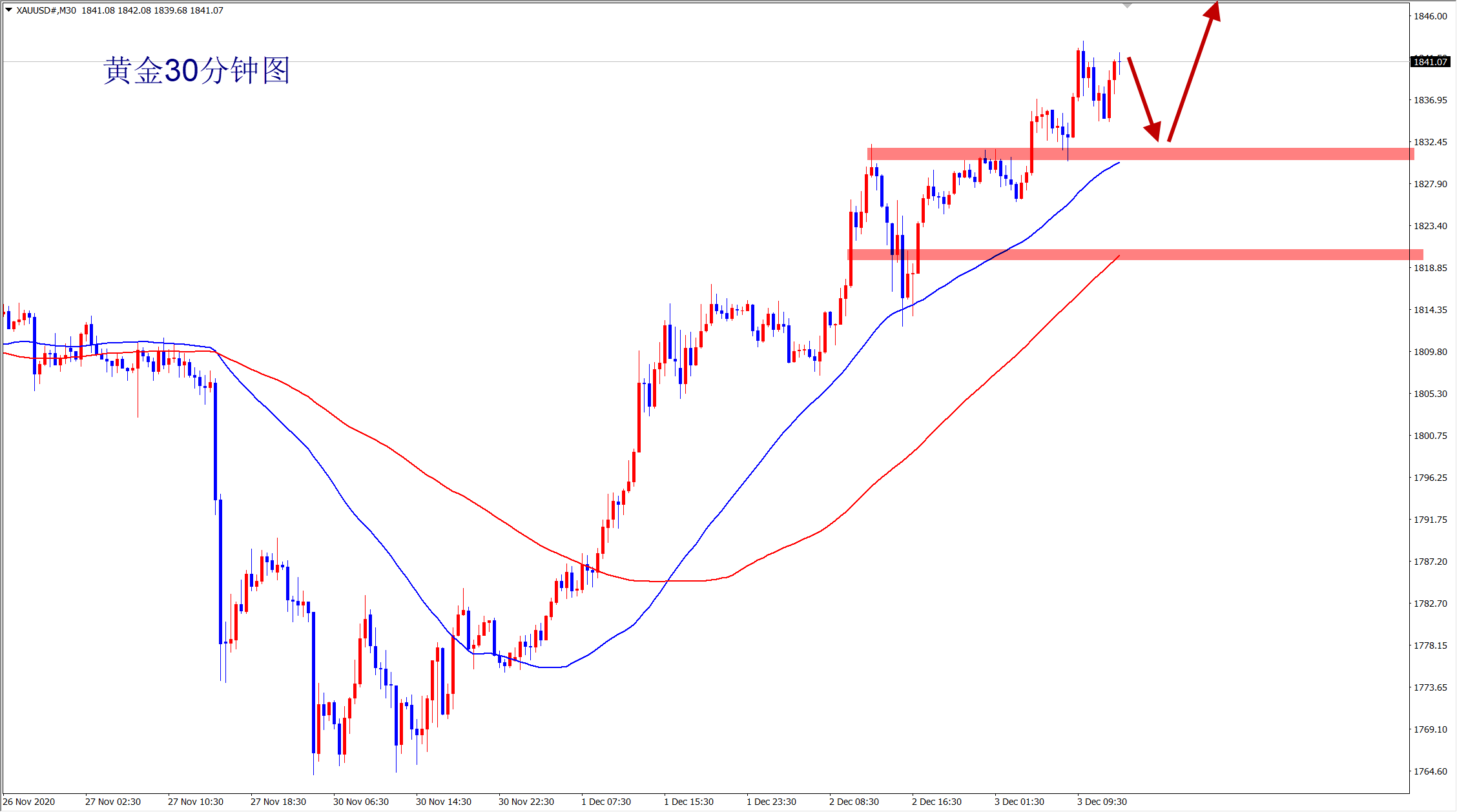 黄金今日1827现价多,1834现价多,全部大涨获胜离场,日内干多两连胜!美盘有周初请数据公布,鉴于黄金涨了近80美金还没有像样的回调,不排除会借数据洗盘,但是1820上我们还是维持低多看涨的思路,美盘回落继续多,在1830上方或者附近即可再次进场多! 做交易要就要坚信市场趋势的力量,顺势而为事半功倍,逆