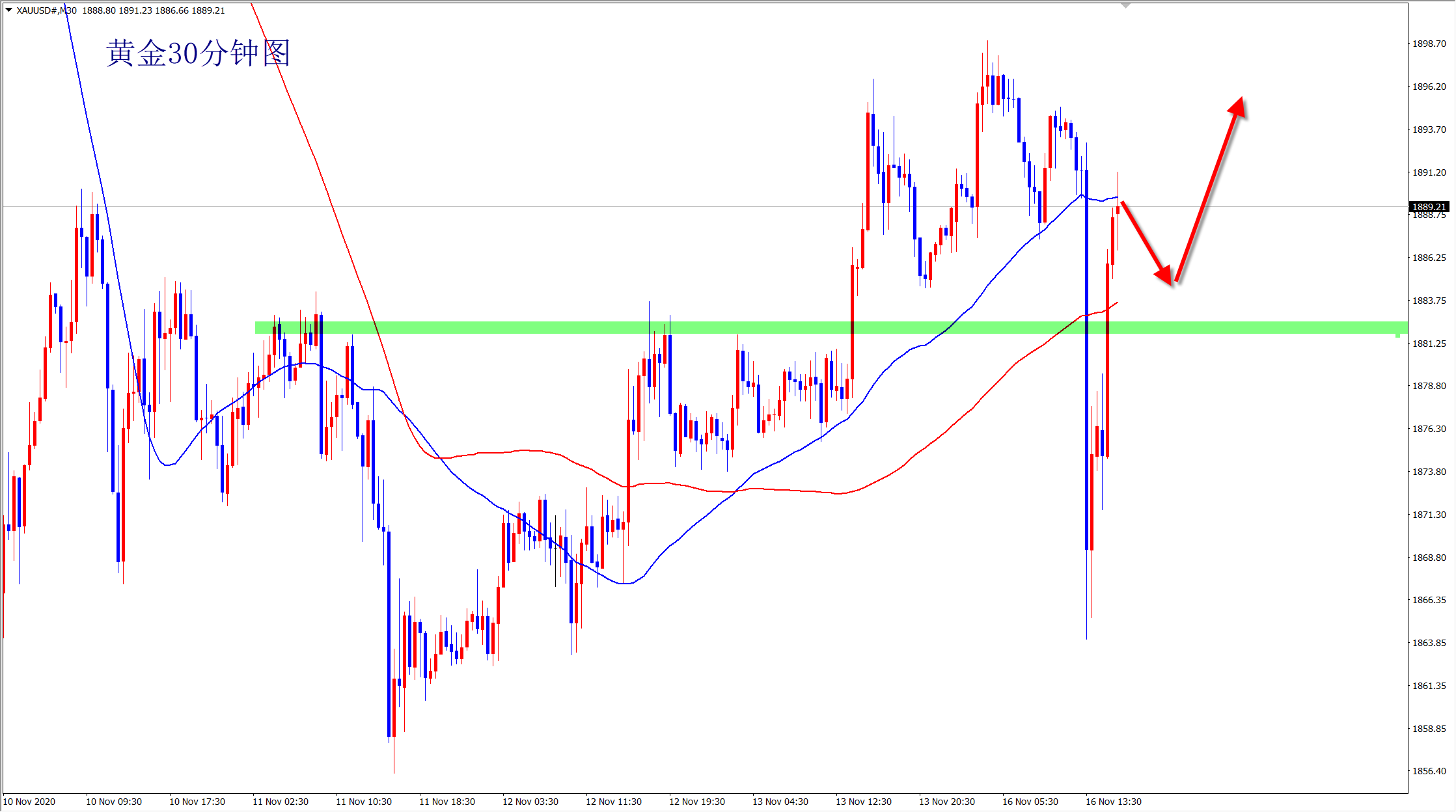 黄金今天的走势可谓是过山车刺激行情,最终没有跌破1860,而是深V翻转,走势就是如此,意外总是发生,这就是市场的神奇之处,强不再强必转弱,空头今日已经宣告夭折,接下来多头明朗,回落低多为主了,如果今日能继续突破早盘高点,接下来1906位置突破就不是问题,而上方甚至可以再次涨至1950一线! 多,接下来