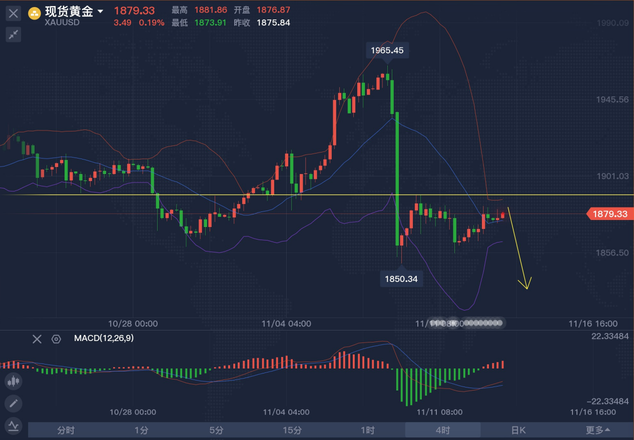 周五(11月13日)亚市盘中,现货黄金仍维持上升态势,目前交投在1880美元附近,走势仍等待进一步的催化剂。 针对黄金的前景表现,机构arktul撰文进行简要分析,内容如下: 黄金价格隔夜上涨0.62%,至每盎司1877.00美元。由于市场继续经历周一的暴跌,金价仍处于1855.00美元至1885.00美元的区间内。