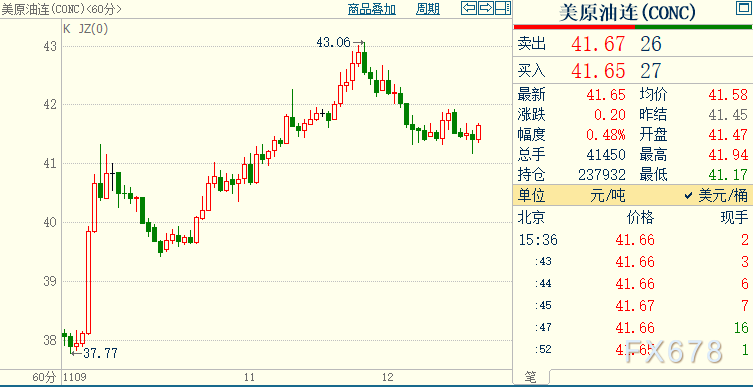 周四(11月12日)欧市盘中,美国原油期货跌至两日低位41美元/桶,布油短线加速下挫近0.4美元至两日低位43.39美元/桶,此前IA下调原油需求预期,不过由于新冠病毒感染病例激增削弱了燃料需求,人们越来越希望世界主要产油国推迟原定的供应增加计划,本周截止目前油价涨幅已超过10%。 截至发稿,美国原油期货价格