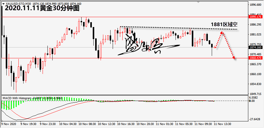 黄金日内维持窄幅震荡走势,并且反弹一直未能突破1885的阻力,反弹非常弱势,今晚美盘黄金二次下跌的概率较大,空,美盘1880下直接空! 如果你的目标是山顶,那就请不要在意脚下的碎石,更不要因沿途的野花而迷失自我!黄金下跌是方向,反弹是调整,而经过昨日今日的调整,黄金完全有可能会在今日继续破位下行