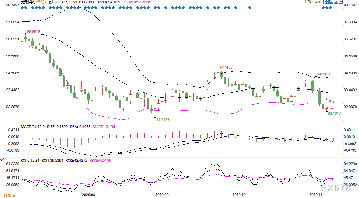 周三(北京时间11月11日)欧市盘前,美元指数小幅震荡,现报92.7888,微涨0.05%。拜登政府将决定美联储从主席、副主席、理事等官员是否能得到继续任命,而共和党如果能够继续控制参议院,这些官员将大概率连任,但是这会影响拜登政府推出更大规模财政刺激方案,美元或将会升值,反之,美元或将贬值。另外,美联储今年