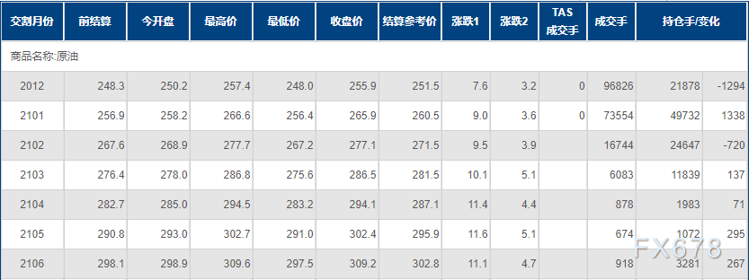 周三(11月11日)上海原油价格大涨,主力合约2012以255.9元/桶收盘,上涨7.6元/桶,涨幅3.06%,盘中创10月28日以来新高至257.4元/桶。因对新冠疫苗将提振原油需求的乐观情绪,盖过对眼前防疫措施增多可能打击需求的担忧;美国石油协会公布的原油库存降幅大幅高于预期,也给油价提供支撑。但IA微幅下调2020和2021年的