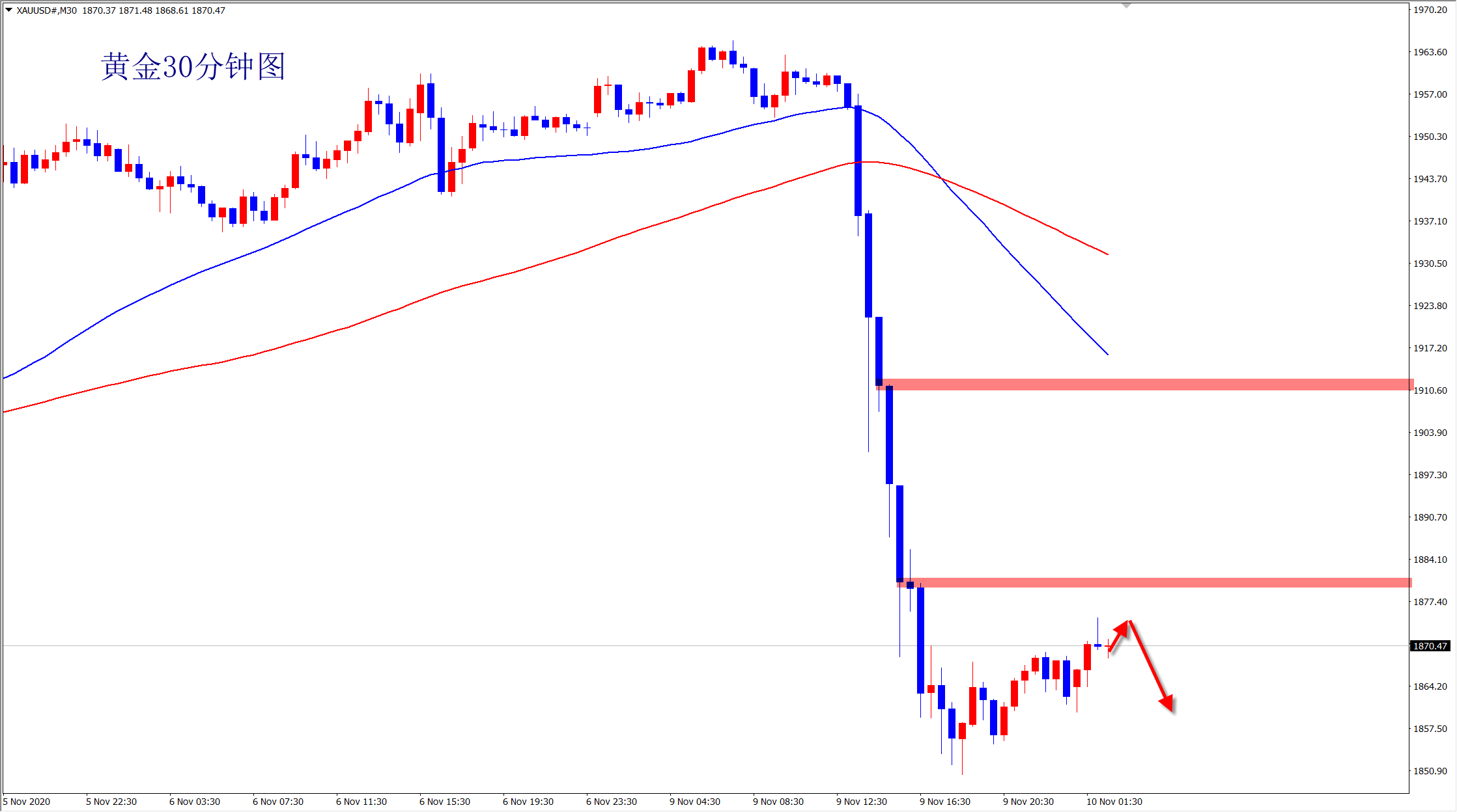首先还是复盘一下昨晚惊心动魄的黄金行情: 其实本次做多黄金,初期进展的很顺利,我在1916开始做多,1930美元加仓,最高上涨到1965美元,最高峰的时候盈利挺不错的。 不过晚间风云突变:疫苗的消息出来之后,黄金急转直下。 我设在1915美元的止损被触发,多单全部止损。最高峰我账户盈利5