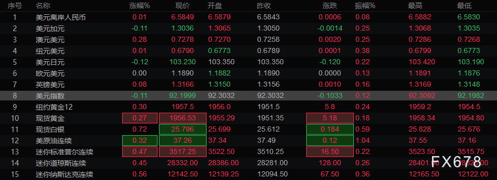 周一(11月9日)亚市盘中,美元指数继续承压,现报92.15附近;现货黄金维持反弹走势,最高一度逼近1960美元/盎司。上周末多家美国主流媒体宣布“拜登胜驯,外界预测拜登上任后会加大经济刺激力度,这令黄金多头感到鼓舞。在美国媒体预测拜登获胜后,特朗普依然坚持认为自己才是大选赢家,特朗普继续指责选举中存在欺诈