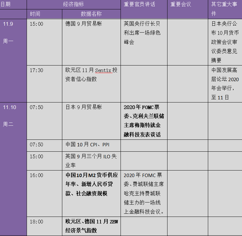周五(11月6日)美元指数跌至92.18,触及9月1日以来最低,由于对财政刺激力度减少的预期,长期美债收益率大幅下降,再加上股市和其他风险较高资产的反弹,使美元承受着持续的抛压,这种压力可能会持续下去。美元疲软基调总体上保持不变,瑞郎飙升至2015年以来高位;日元势创七周来最大周涨幅,稍早升至3月以来高点。瑞