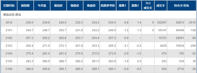 周四(11月5日)上海原油价格下跌。主力合约2012,以234.2元/桶收盘,下跌0.8元/桶,跌幅0.34%,早盘一度创一周新高。美国IA原油库存意外大降,但在美国大选开票过程深入之后,拜登胜选预期升温,投资者已经开始关注美国新政府中东外交政策的潜在变数,供给前景的忧虑因此压倒了此前库存减少的影响,令油价再度回落