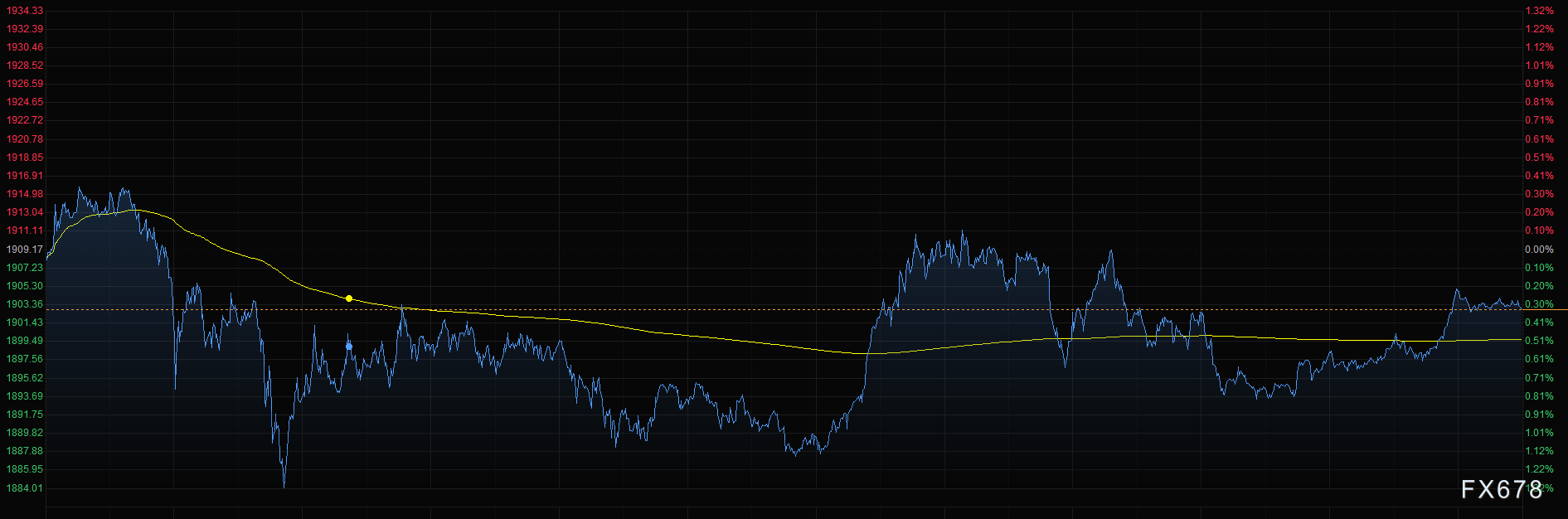 周四(11月5日)现货黄金小幅上涨,目前交投于1904.83附近,涨幅约0.1%。上一交易日黄金波动较大,振幅达30美元以上,最终小幅收跌。因押注民主党人将无法在美国大选中控制参议院,这打消了对美国大规模刺激计划推出的希望。盘中稍早,随着美元成为最受青睐的避险资产,美元一度因避险涨至94.3107,金价下跌超过1%;