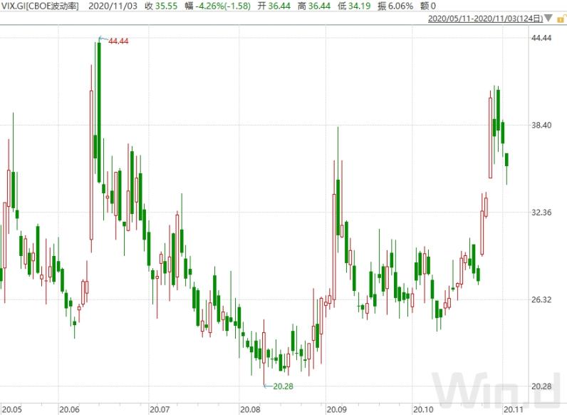 由于新冠疫情和重要风险事件临近,美股“恐慌指数”在10月多数时间里攀升。虽然不少投资者预期市场波动会持续下去,但一些对冲基金认为这种担忧没有根据,并押注波动性在接下来几个月趋于缓和。 衡量标普500指数预期波动性的芝加哥期权交易所波动率指数(VIX)11月3日收于35.55,为一周来最低,上周曾触及41的四