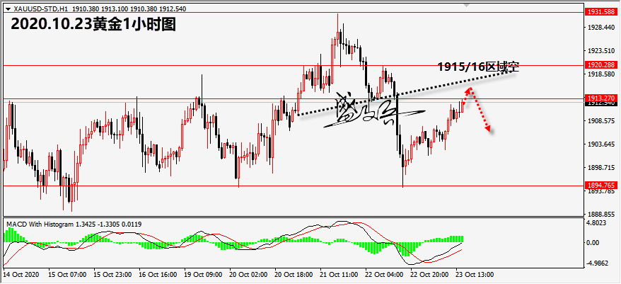 黄金今日单边反弹上涨,但是一直没有突破,我说强调的1913多空分水岭位置,此位置下依然看跌,只有突破的情况下我们才会反手! 最近黄金的走势属于震荡行情,多空持续性不足,大跌之后可以大涨,大涨之后也可以大跌!但震荡之后必然会选择方向,而当前的走势依然是震荡偏空的行情,上方1930位置关键阻力没有突