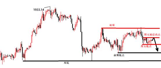 黄金方面,上周刺破前期高点后,还是被打了回来,价格继续围绕大阴线区间走修正。周五勉强收盘于1900一线,周线小阴。 而日线也连续三个交易日震荡,特别是周五,欧盘没有走延续,美盘压制回落,但凌晨同样没有走延续,小阴收盘。这就有几个点需要明确下: 1,循环,上周行情一直在早间回撤,走探底回升
