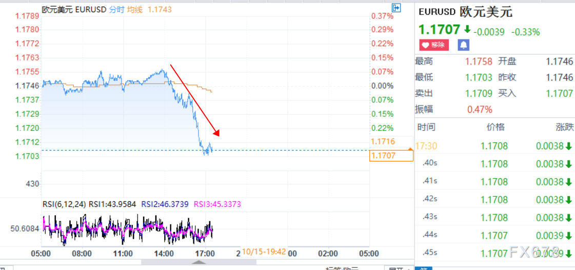 周四(10月15日)欧市盘中,欧元/美元延续跌势,逼近1.17关口,英镑/美元同样走低,最低触及1.2907,空头有望挑战1.29大关;美元/日元小幅上涨,最高105.34;现货黄金承压于1890左右,,一度跌至1889.67美元/盎司。 消息面来看,全球疫情形势急剧恶化,尤其是欧洲多国实施了更为严格的封锁措施,法国“宵禁”、德