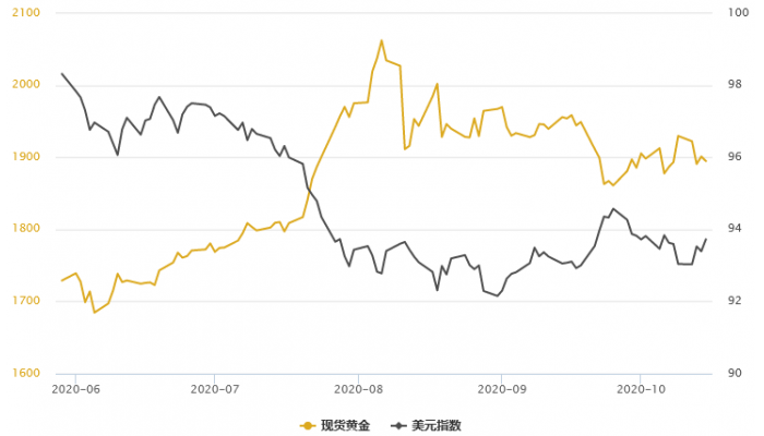 周四(10月15日),现货黄金时隔一日重新走弱,因美元指数刷新六个交易日新高至93.842。欧洲新冠病例数重新激增,引发各界对全球新一波疫情封锁举措的担忧,同时对美国在11月3日大选前通过刺激方案的憧憬也在消退,提振了美元避险需求。二次疫情也给英欧谈判添乱,导致英镑暴跌,也进一步利好美元。 北京时间20:2