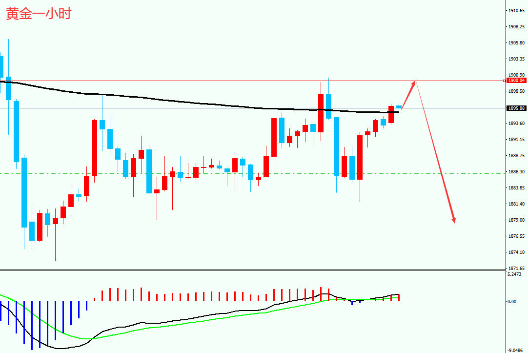 黄金昨日星K线整理收平,整体空间不大,但是拉锯的频率较大,上探1900一线,虚破前一日高点后快速承压回落,又回测接近1小时布林下轨处1882一带企稳,尾盘时段反弹收盘在中性偏高的位置,日图收成小阳星K线。昨日白天强调的1878支撑看涨,美盘1906压制下先空后多,尾盘提示止损放在1878位置在1883/85区域可以布局多单