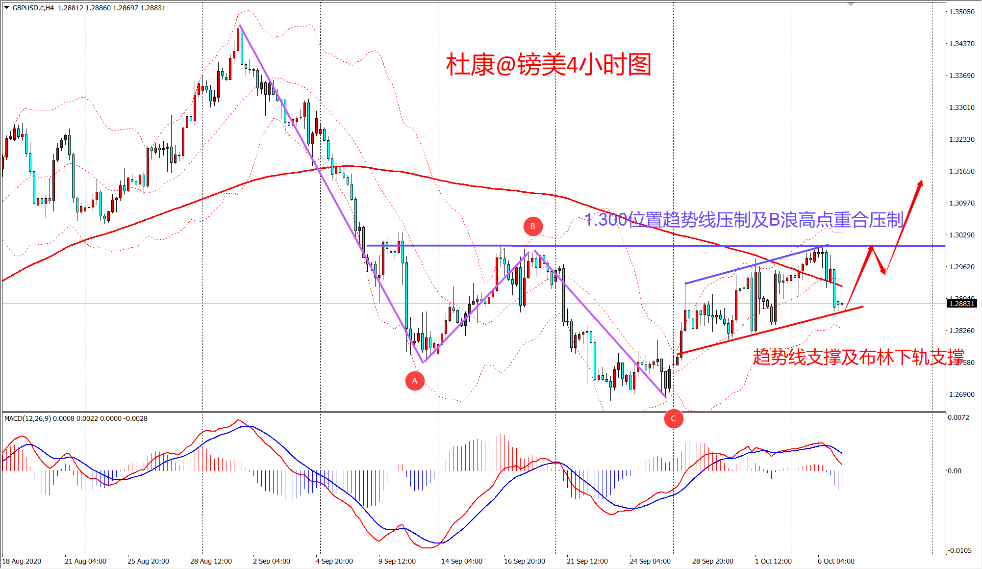 刚刚公布了英国房价指数,增长为自6月16日以来最大幅度。说明经济在不断的复苏,脱欧上还有一定的不确定性,但是已经处于尾声,翻不起太大的浪花,虽然短线会有一定的波动,对于趋势的影响不大。 技术上,又是老生常谈了,基本上还是维持在1.280-1.300区域内震荡,小通道式的反弹。前面也说了镑美经过AC浪的下