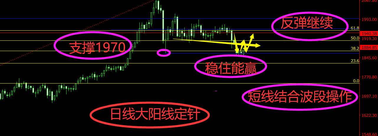 黄金今日重要的布局:短线开多支撑1878开干。 —————————————————————————————————————— 昨日美盘:由于黄金昨晚反弹力度过强,实盘布局的1865空,瞬间被空头绞杀,唯一还有安慰的是白盘的1860空,收割了9美金。两个空一胜一负。而黄金反弹之后,日线大阳线收线呈