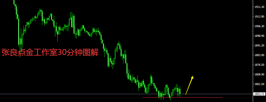 震荡慢跌走震荡,小区间操作走一波! 拉开短时周期线,可以清楚的看到,近期金价整体震荡慢跌,标准的小熊市行情。 日间金价探底1850一线后,止步不前,但也没有大幅反弹,而是走起了震荡修整,再次时机我们可以小区间短操作一下,目标有利可图即可! 具体操作:1852-1853多,止损1845,目标1868-1