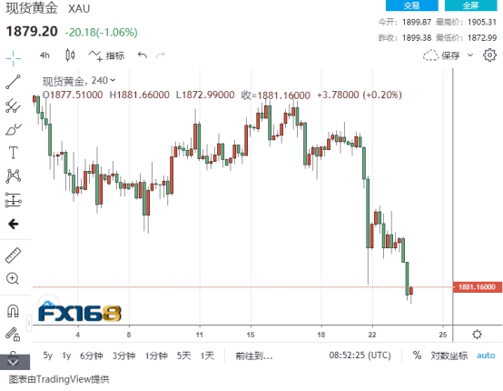 周三(9月23日)亚市尾盘,现货黄金继续承压,金价现报1886美元/盎司附近。知名财经资讯网站cooi.co周三最新撰文,对日内黄金走势进行前瞻分析。 根据cooi.co,金价在昨日收于1901.80美元/盎司下方后已经确认跌破这一关键水平,这可能令金价后市进一步大跌。 cooi.co在文章中写道,金价