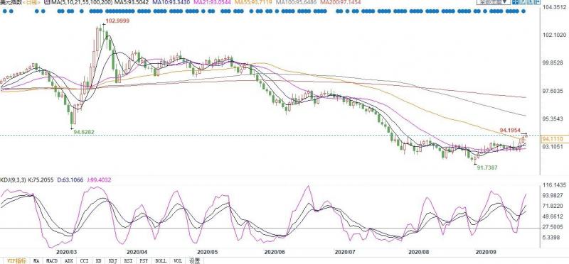 刚刚,美元指数又急涨,刷新7月28日以来高点至94.17,涨幅约0.21%。昨日美元继续大涨,一度顶破94关口,创八周新高至94.08,因美联储大鸽派埃文斯提到升息前景显鹰派基调,而且美国经济刺激方案通过前景渺茫加之新冠疫情反弹,也推升美元的避险需求。 刚刚,美元指数又急涨 美联储大鸽派意外“说