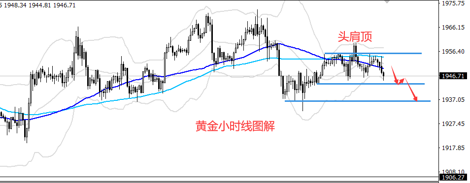 现货黄金现报1933,1953空单如期获利,头肩顶形态再建功勋,周一开门红。交易有计划,计划有交易。 周一开盘,金价反弹振幅校上周五欧盘黄金受阻1955回落,美盘上冲1960未企稳,周一早盘反弹1955也未企稳,说明这些点位都是重要参考点位。交易就是从历史中寻找信号,找到可靠的支撑阻力,或者形态,一旦确认信